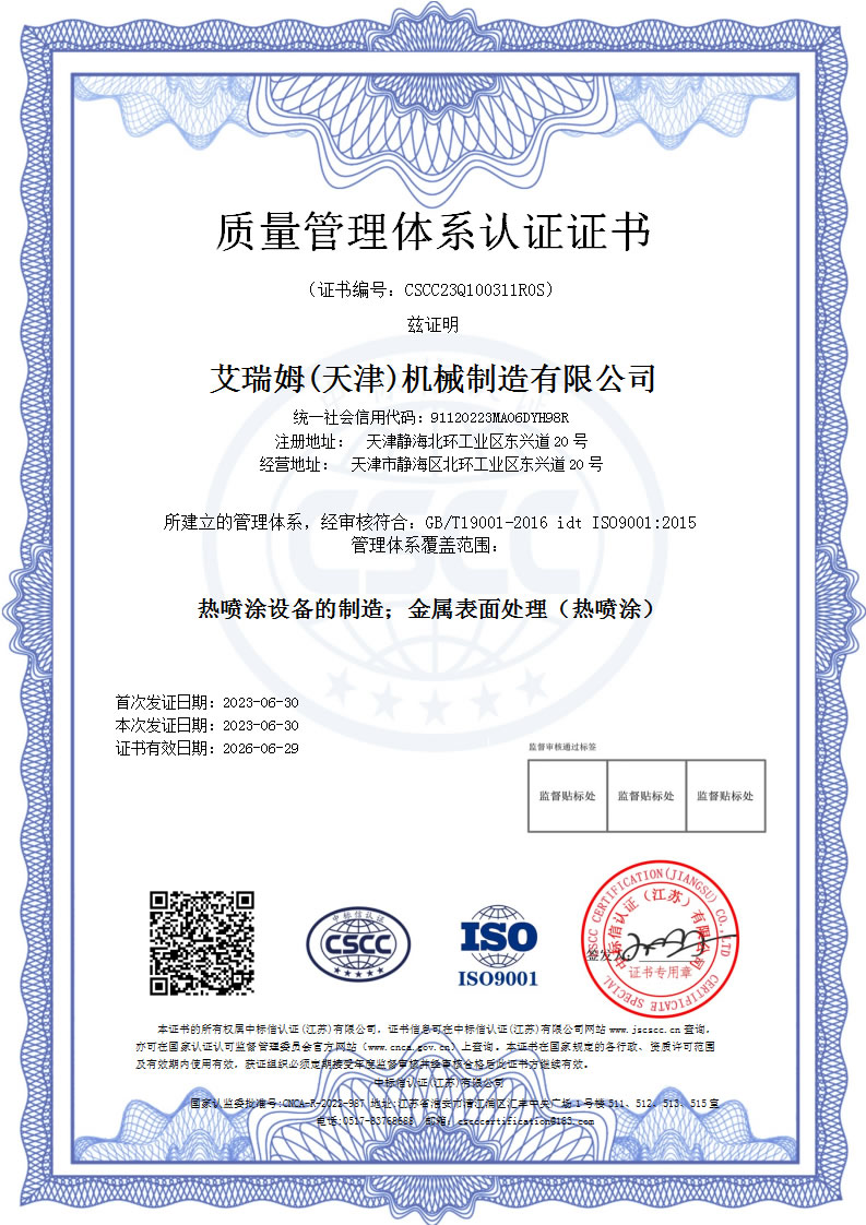 艾瑞姆(天津)機(jī)械制造有限公司是一家集熱噴涂設(shè)備研發(fā)、生產(chǎn)、銷售;耐磨、耐高溫、防腐現(xiàn)場(chǎng)施工為一體的專業(yè)性企業(yè),是中國(guó)表面工程協(xié)會(huì)團(tuán)體會(huì)員、全國(guó)熱噴涂協(xié)作組成員,擁有熱噴涂工程施工一級(jí)資質(zhì)。